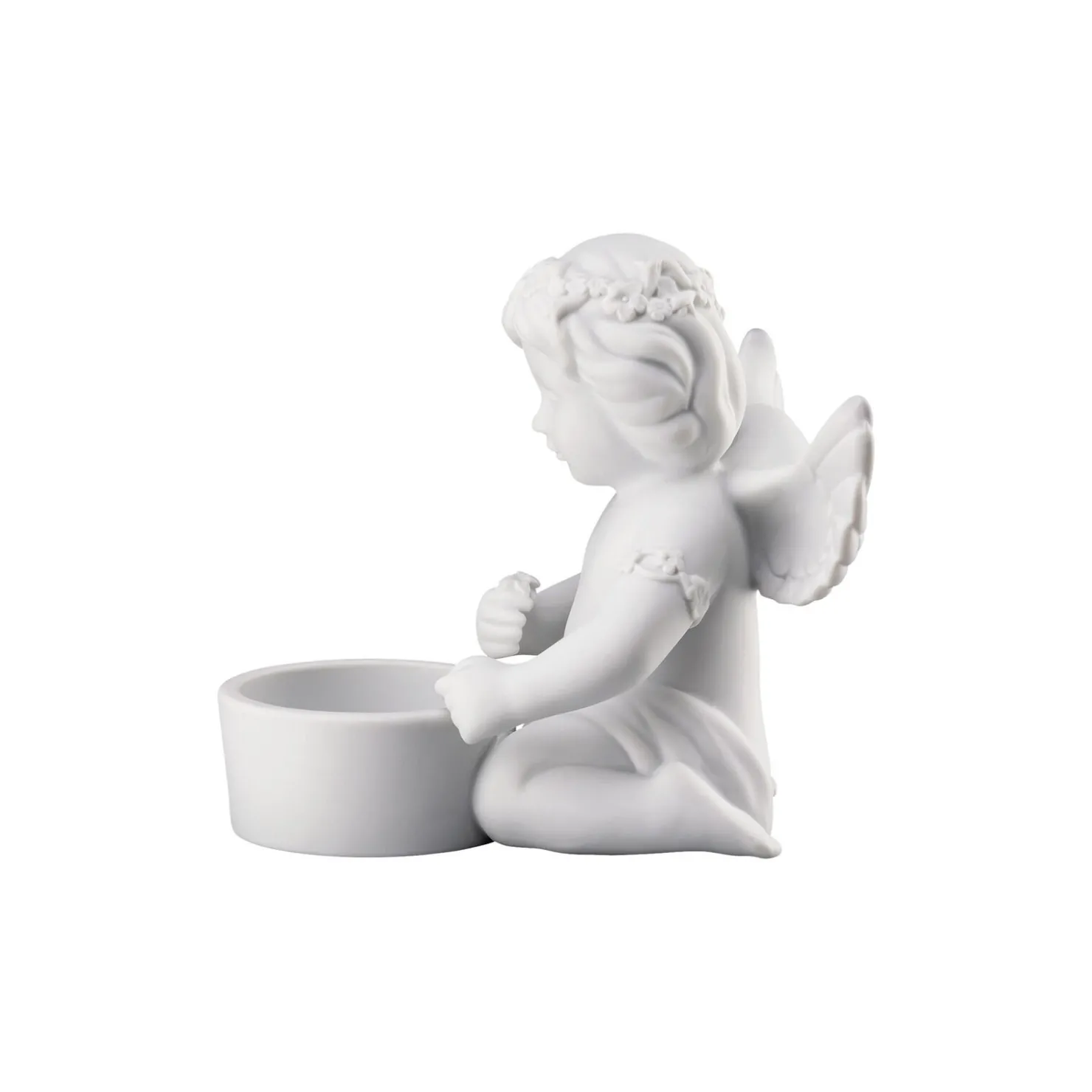 Der fröhliche Rosenthal Engel mit Blumenkranz sorgt als Porzellan Tischlicht für schöne Akzente Ø 8,8 cm – h 10,2 cm