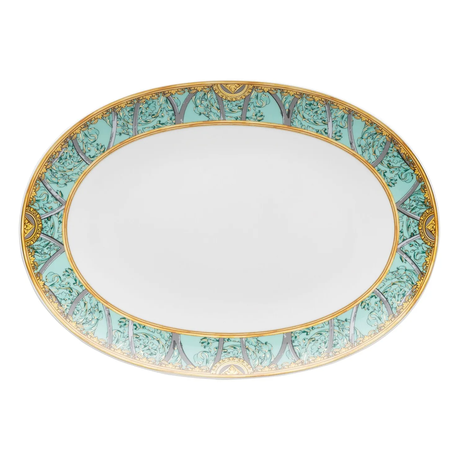 Versace Versace Scala Palazzo Verde Platte – Oval – Ø 32,6 cm – h 3,7 cm, Porzellan