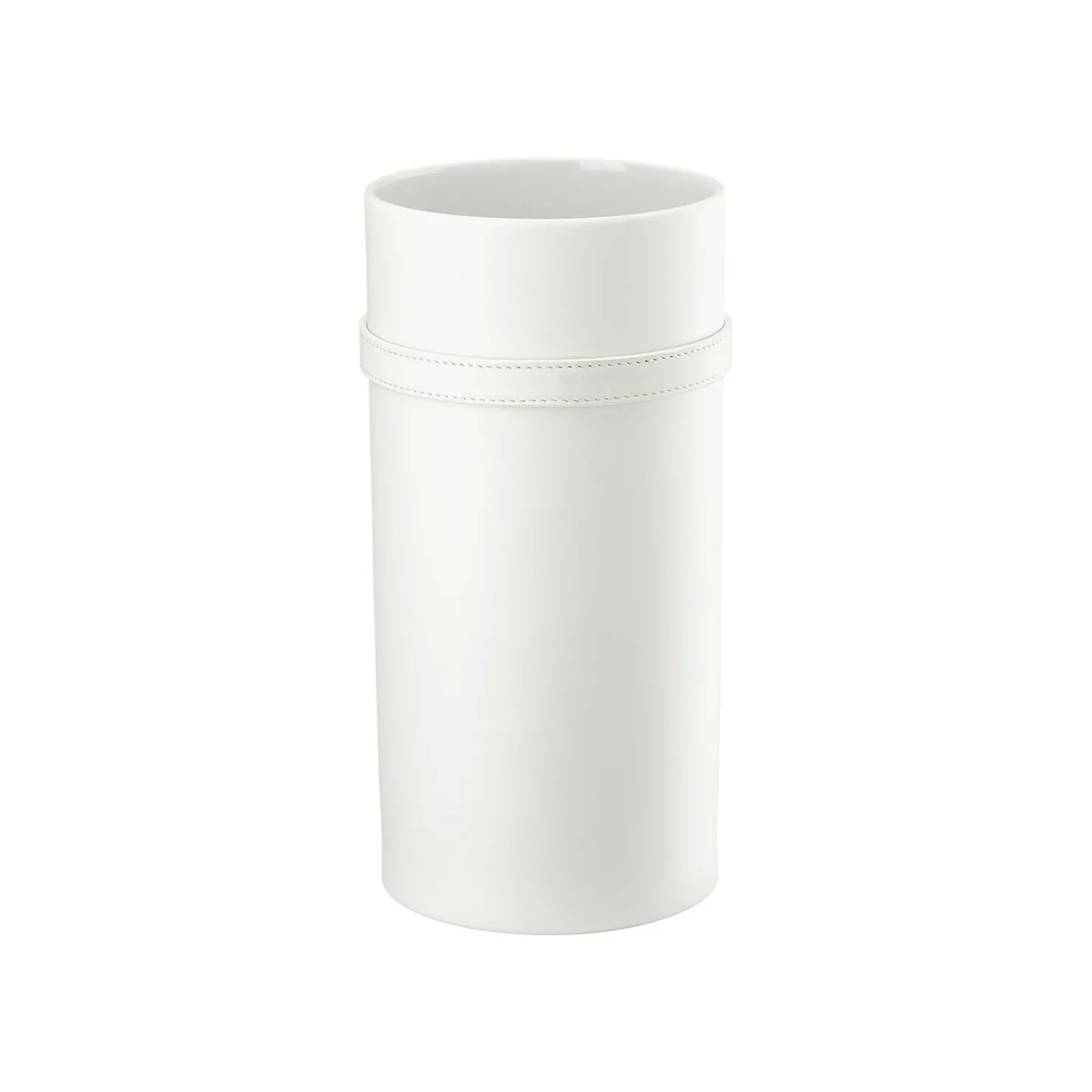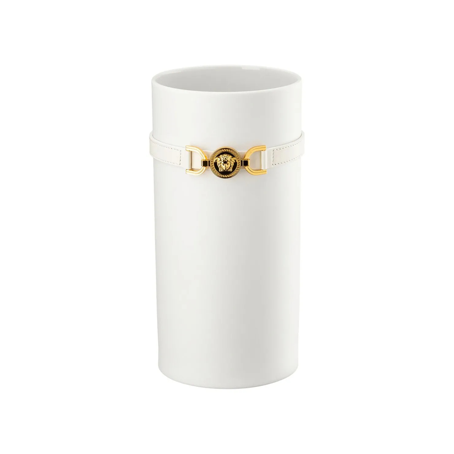 Versace Medusa ’95 White Vase – Zylindrisch – Ø 12,2 cm – h 24,6 cm, Porzellan, Leder